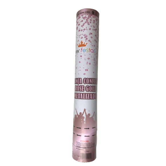 Material: tubo de papel, confetes metalizados, ar comprimido e mecanismo de ferro
