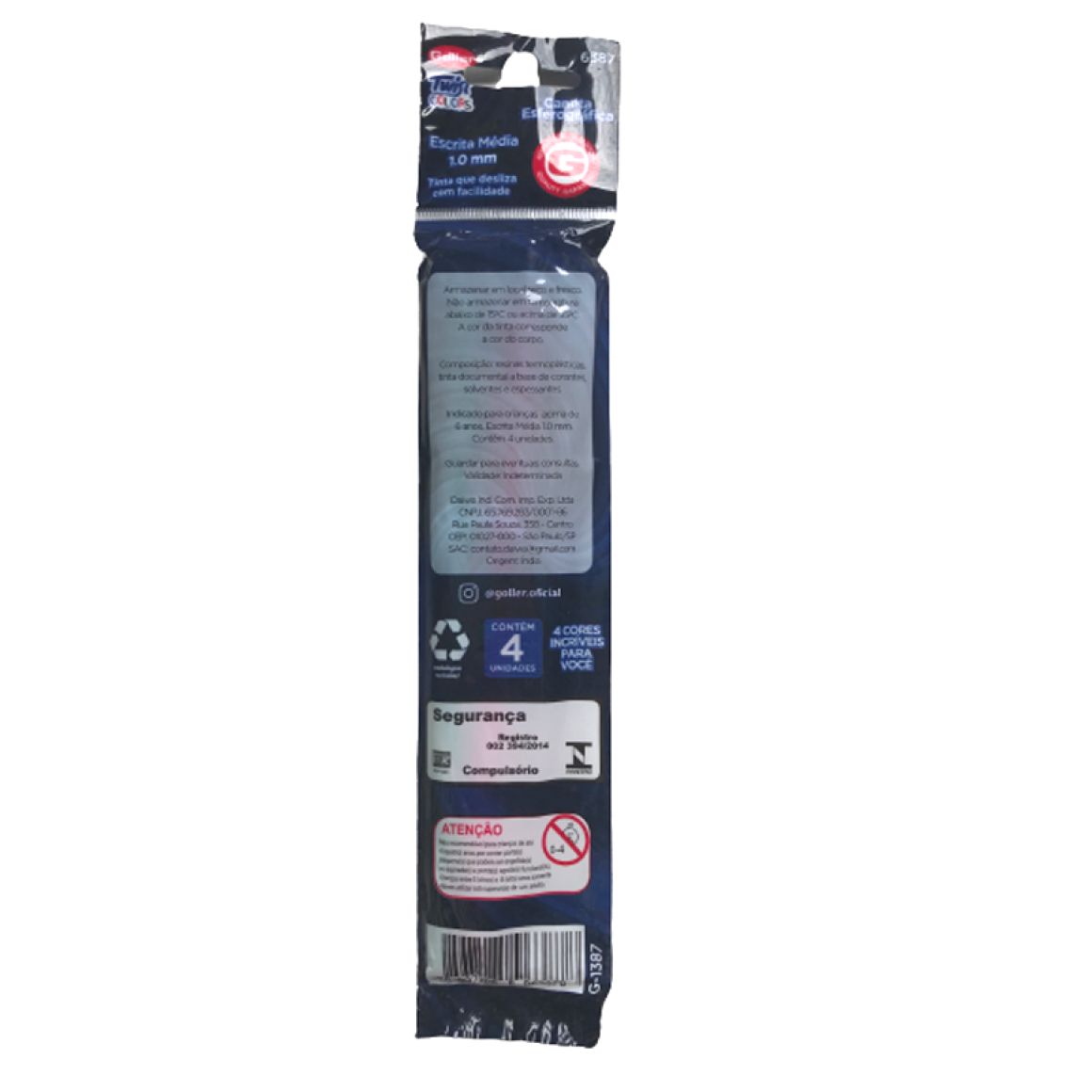 Caneta Esferográfica Escrita Média 1,0mm com 4 peças