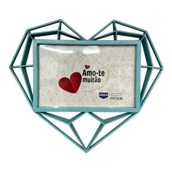 Porta-retratos em formato de coração, foto horizontal tamanho 10x15
