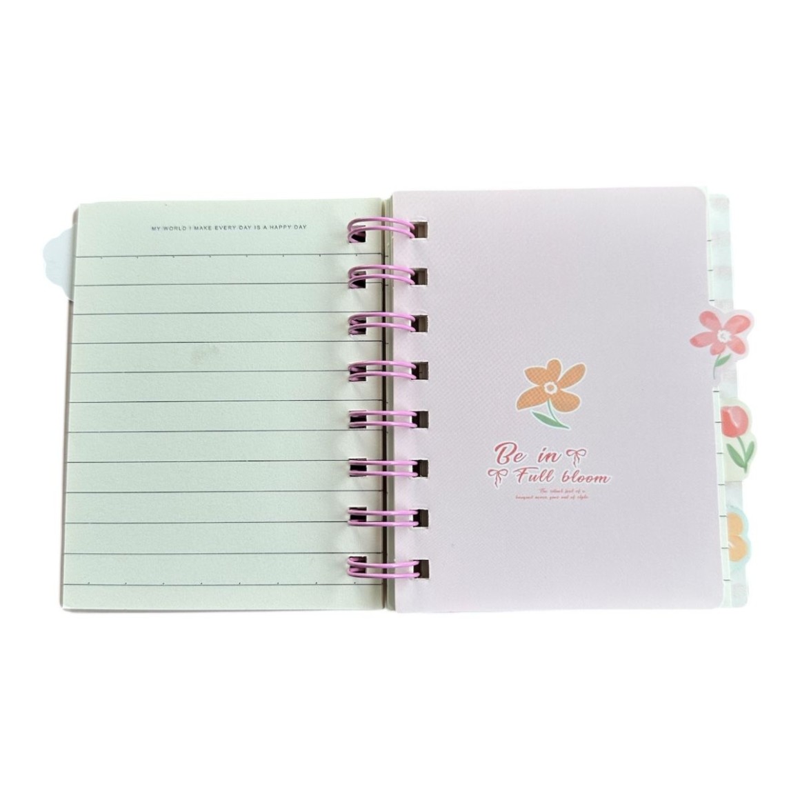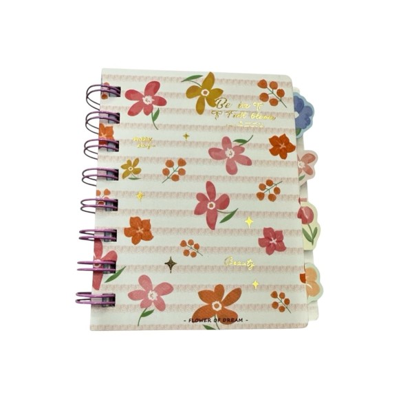 Bloco com 70 folhas pautadas, capa cartonada estampada com flores.