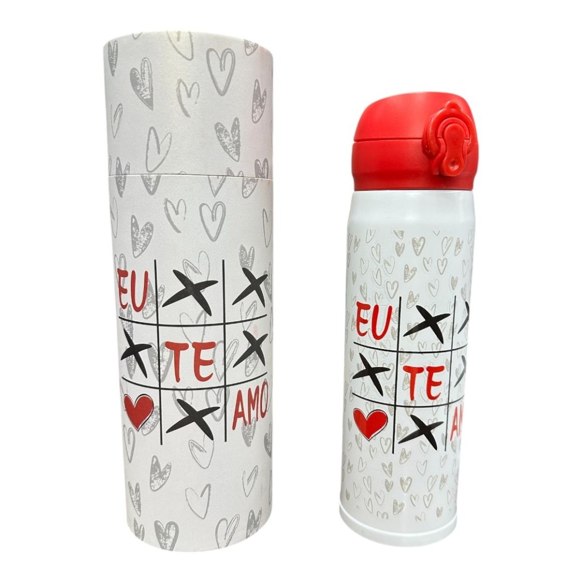 Garrafa térmica 400ml, embalada em caixa cartonada cilindrica.