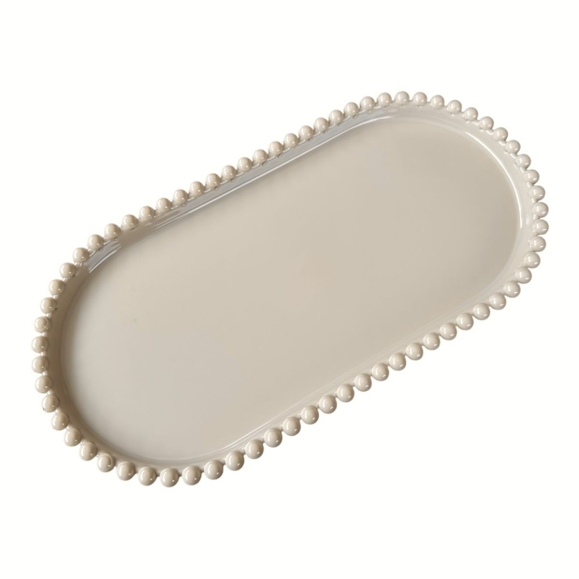 Bandeja oval charmosa e resistente, com detalhe nas bordas.