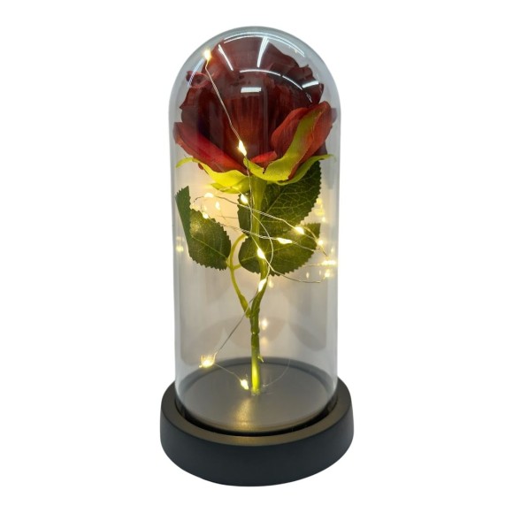 Cupula de vidro com Rosa vermelha e luz de led, design elegante e único>