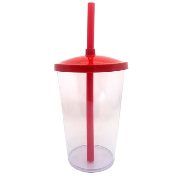 COPO C/TAMPA E CANUDO 500ML VERMELHO