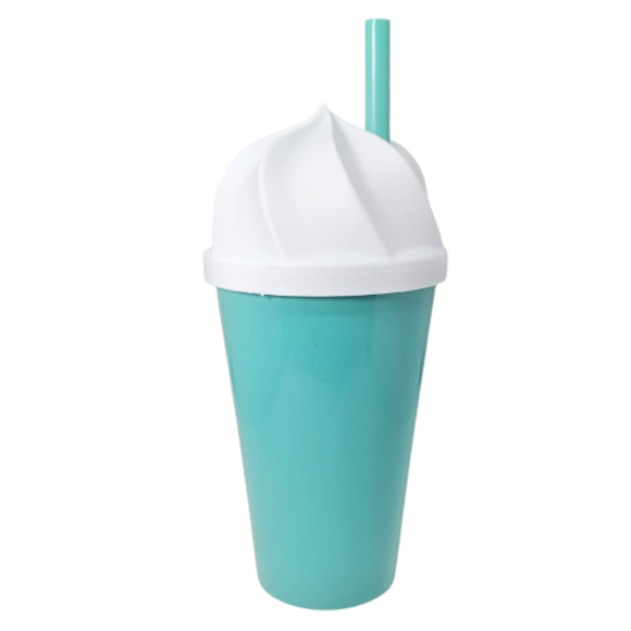 COPO EM FORMATO DE SORVETE COM TAMPA E CANUDO